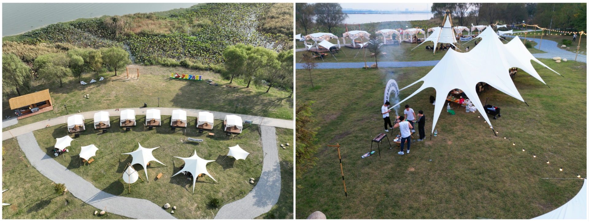下午兩點(diǎn),我們來(lái)到了位于陽(yáng)澄湖鎮(zhèn)的露營(yíng)基地。放眼望去,一頂頂帳篷似羽翼華美的白天鵝,在這綠草如茵的場(chǎng)地上舞動(dòng)。遠(yuǎn)處的湖面在陽(yáng)光映射下熠熠生輝,如璀璨星辰投入山林懷抱。耳邊隱現(xiàn)的鳥鳴挑動(dòng)著大家緊繃的神經(jīng),這一刻我們忘卻了所有煩惱,步入這畫中世界。圍爐煮茶、天幕燒烤、林中越野,一項(xiàng)項(xiàng)活動(dòng)放松了大家的身心,也拉近了彼此的距離。嘴角微笑抹去片片愁容,心間暖意撫平陣陣秋涼,一群有趣的靈魂在此刻碰撞,迸發(fā)出無(wú)窮的能量,激勵(lì)著大家無(wú)畏挑戰(zhàn),勇敢向前!